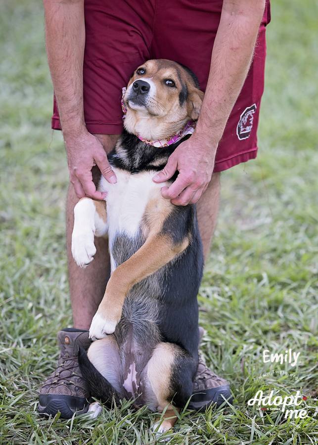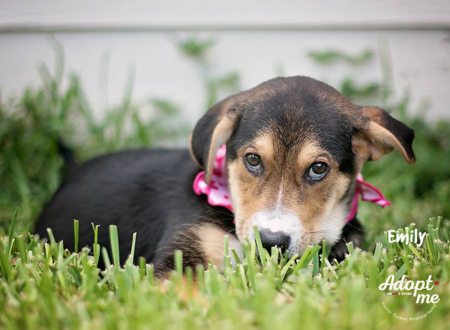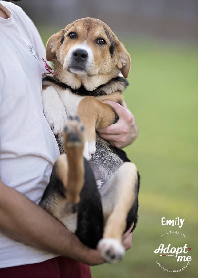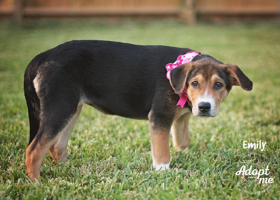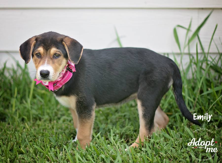 Emily is looking for a home with other dogs to help mentor her and play with her. Older kids may be OK  in a home with a large-breed experienced handler as these pups grow by leaps and bounds and don't know their size and strength yet.