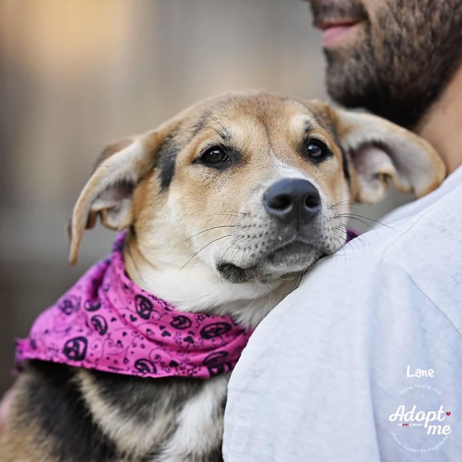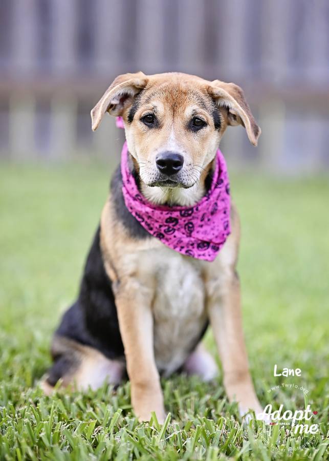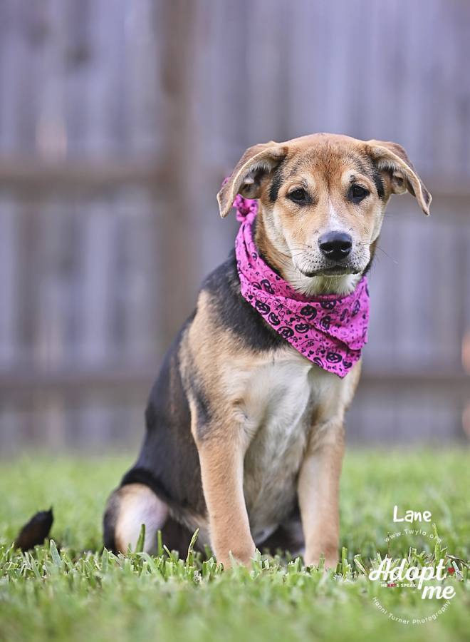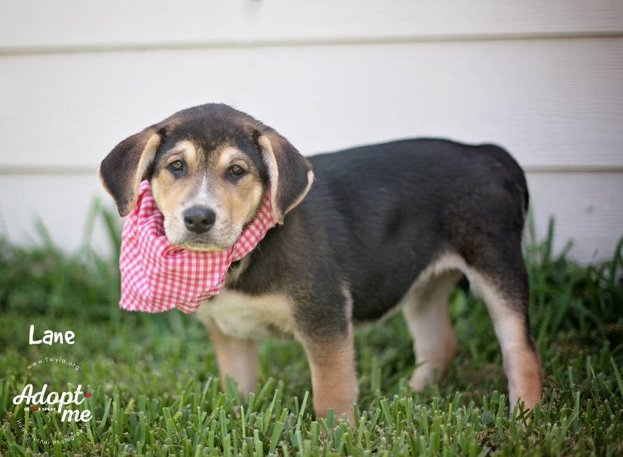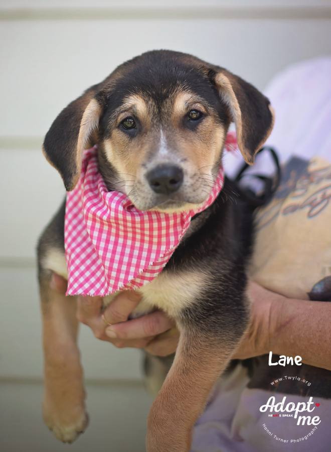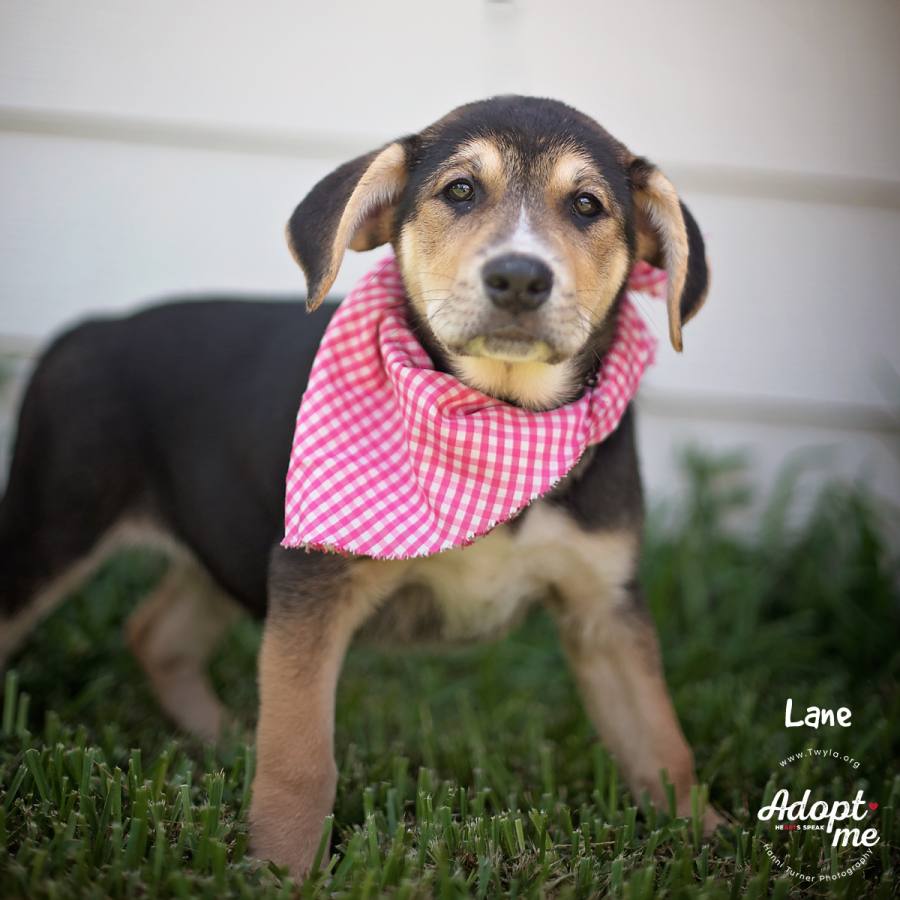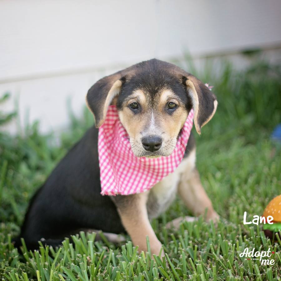 Lane is looking for a home with other dogs to help mentor her and play with her. Older kids may be OK  in a home with a large-breed experienced handler as these pups grow by leaps and bounds and don't know their size and strength yet.